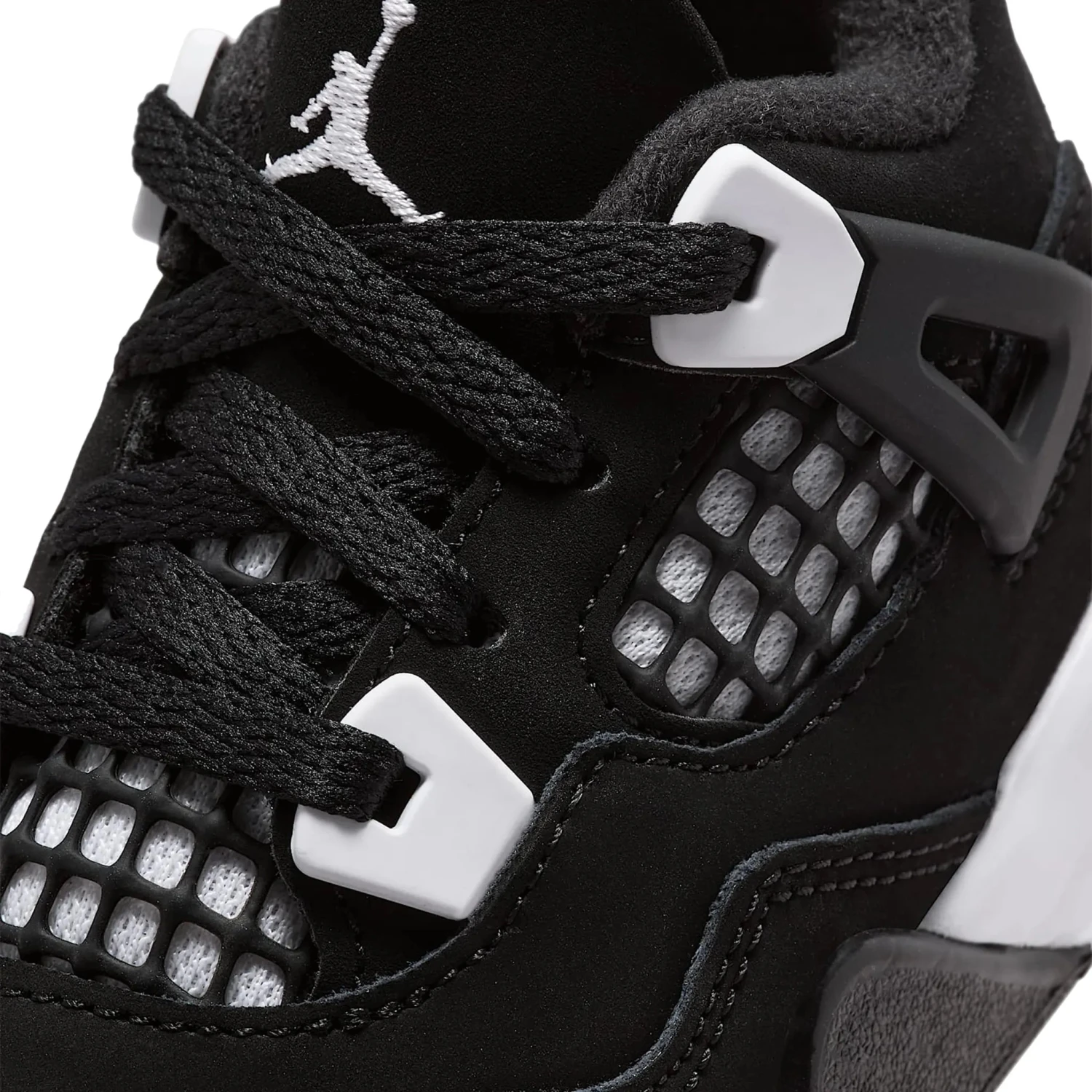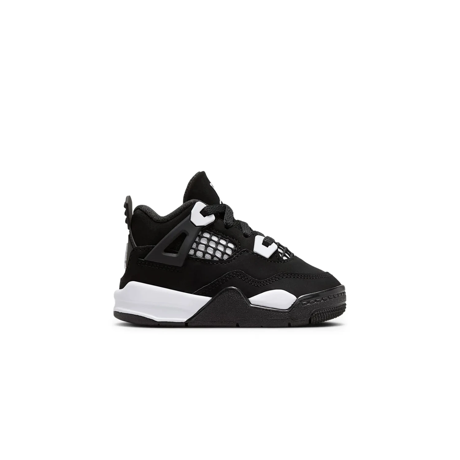 With a modern touch, the Air Jordan 4 Retro White Thunder (TD) revives the striking appearance of the original “Thunder.” It has a sleek black nubuck top with striking white elements that stand out on the mesh panels and eyelets, which are covered in black netting for texture. It has that distinctive Jordan look thanks to the prominent Jumpman emblem on the tongue and heel. Every step feels light and effortless thanks to the incredibly comfy white foam midsole.