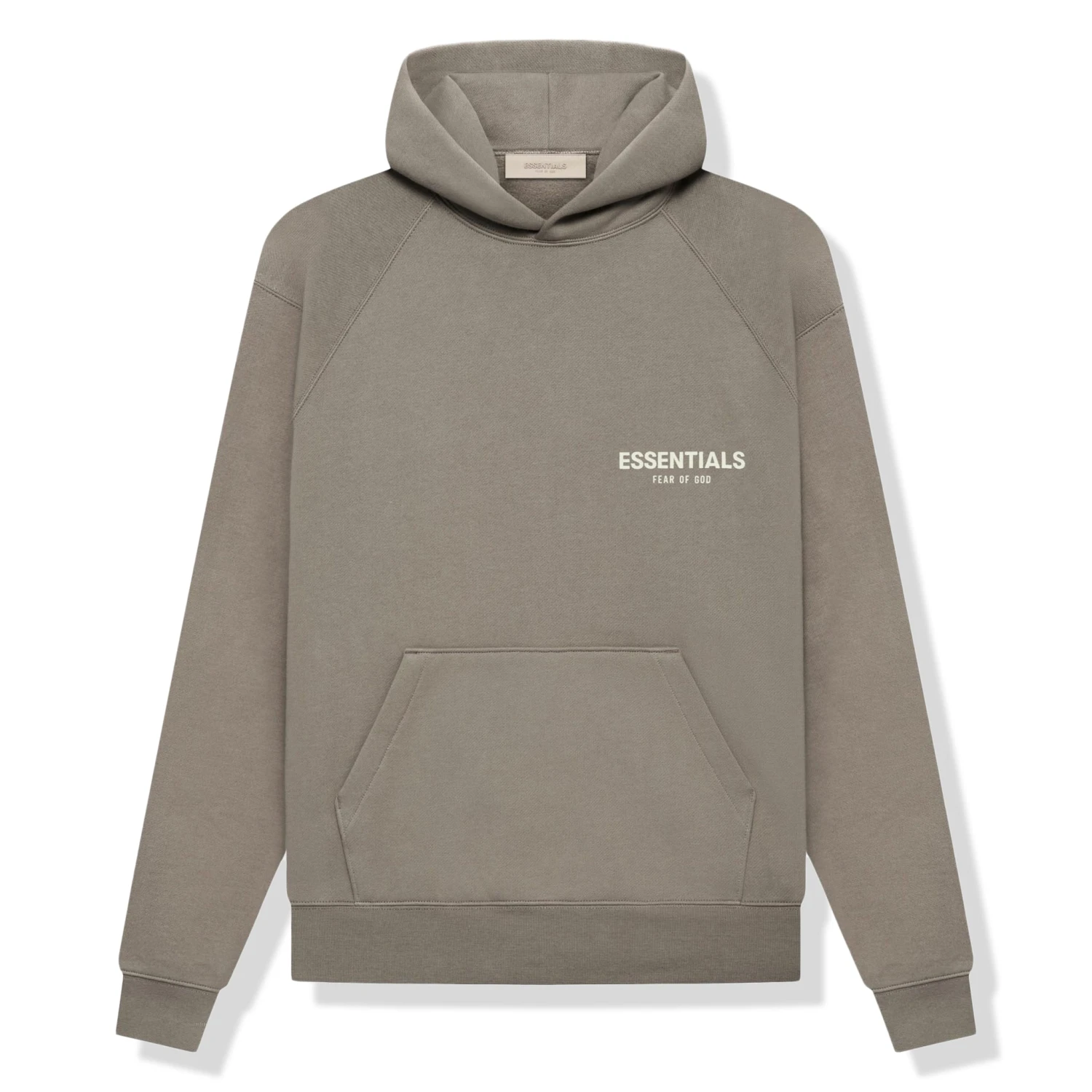 This Fear of God Essentials Pullover Hoodie in a Desert Taupe colorway features cream branding on the hood, and chest. Each Fear of God Essentials Pullover Hoodie made available as a part of this release was made from a cotton/viscose blend.