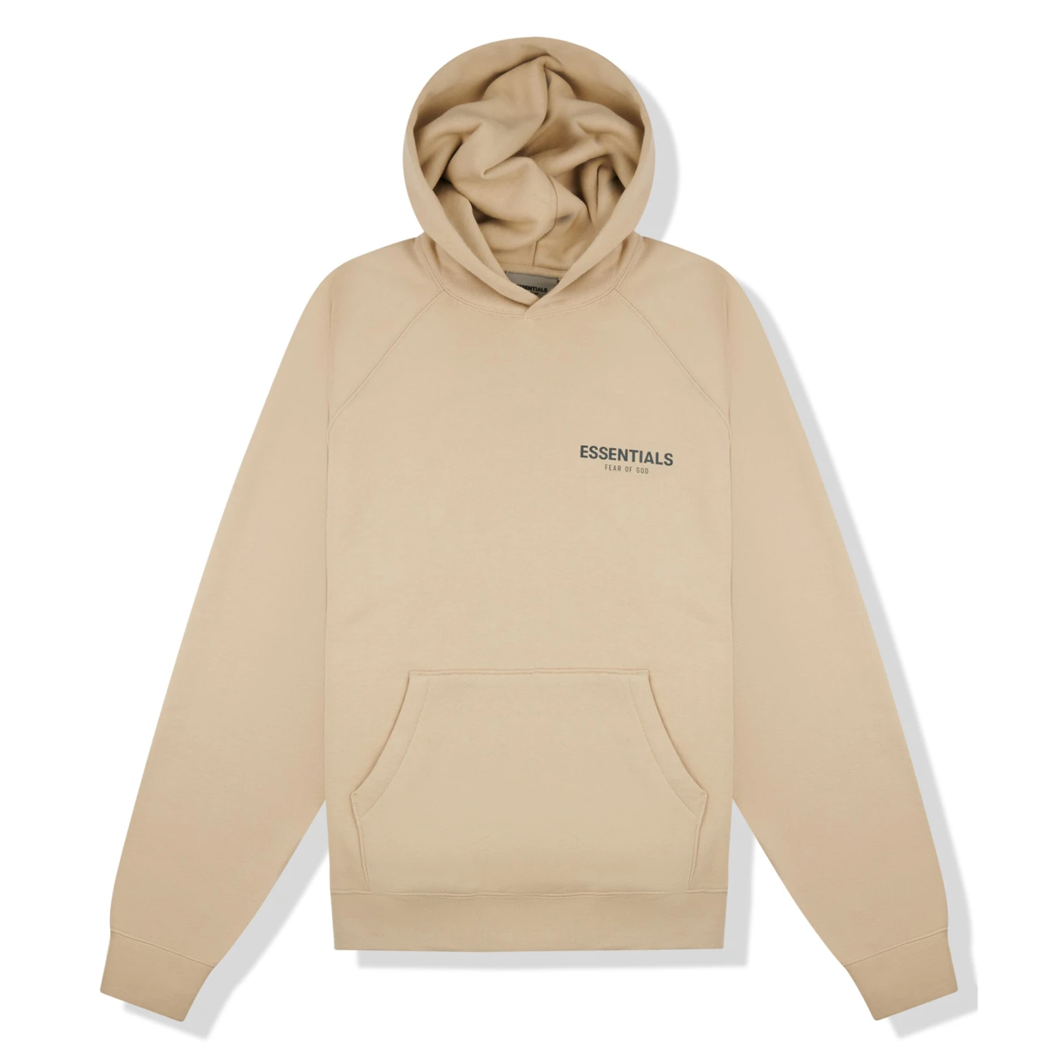 A boxy-fit wardrobe staple in a neutral hue? It must be Fear of God ESSENTIALS. The classic pullover hoody is the canvas of choice here, and its exactly as expected. Soft fleeceback jersey, ergonomic raglan sleeves, reflective printed branding and a rubber patch at the top of the hood: its all there.