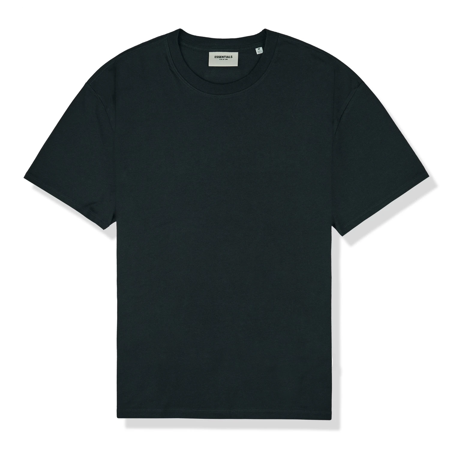 A black cotton tee is an essential in the lineup of any streetwear label, and Jerry Lorenzos Fear of God ESSENTIALS throws its hat in the ring with this one. In the brands typical style, its cut to a classic boxy fit and decorated with clean, no-frills branding; theres bold text across the back and a signature rubber patch at the nape.