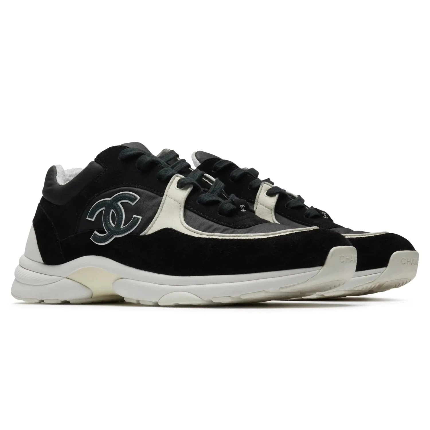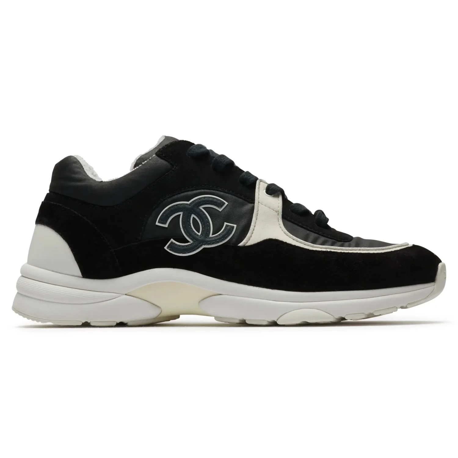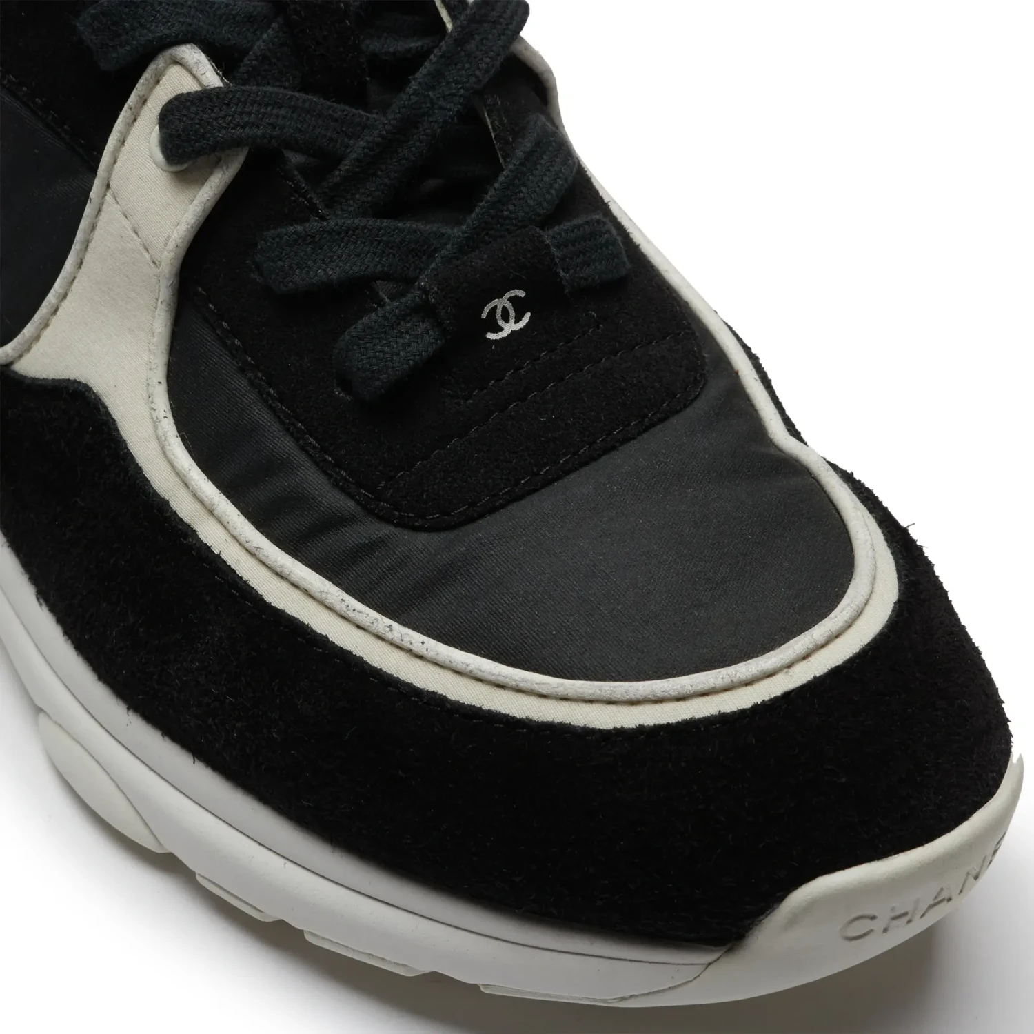 Preloved – Chanel CC Logo Suede Nylon Reflective Black White Sneaker