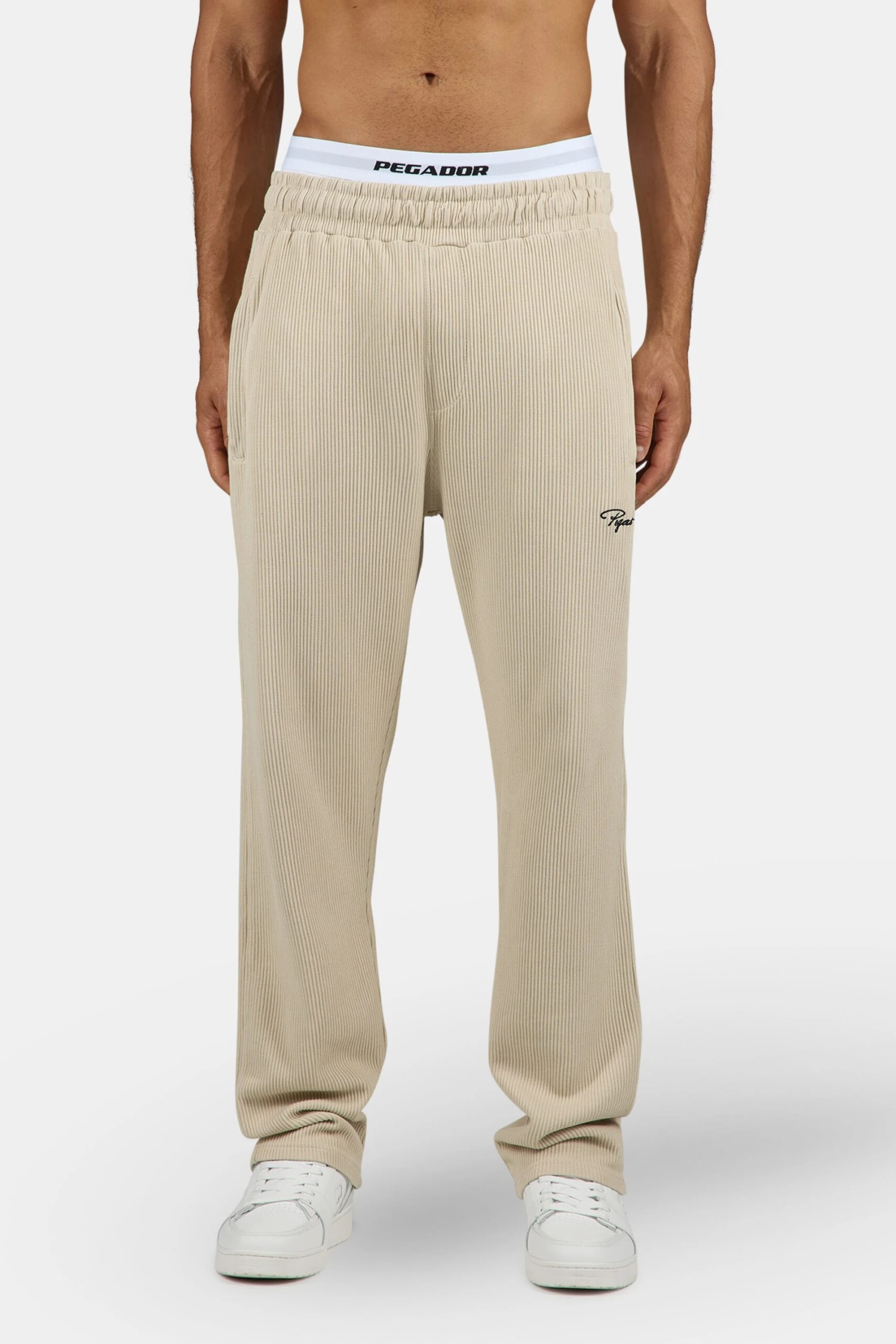 - stone-farbige gewaschene wide Rib Pants